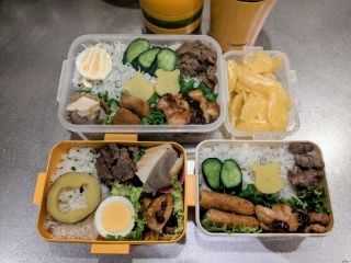 今日のお弁当たちこんな感じ。今晩は昨日の残りのおでんもあるしマカロニサラダもあるし鶏レバーウスターソース煮もあるし冷凍餃子焼いて終わりにしよっかな。いや、冷凍餃子はいざってときまで温存しとこうか?